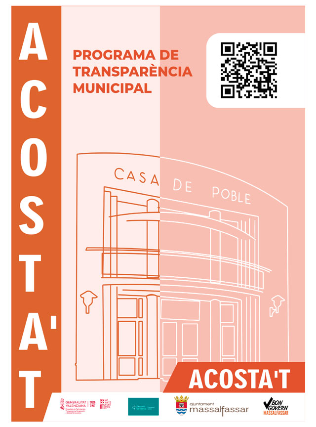 El projecte Acosta’t és una iniciativa que aposta per la transparència pública de l’Administració local, millorant d’esta manera la comunicació amb la població de Massalfassar. Acosta’t està conformat per diverses accions, com una reunió entre el equip extern i intern i un informe de resultats, i per accions públiques, que os mostrem a continuació.